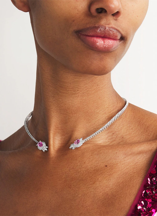Round Diamond: 6.07 ct Marquise Diamond: 1.20 ct Pink Sapphire: 2.65 ct