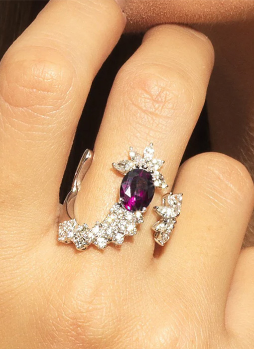 Round Diamond: 0.58 ct Marquise Diamond: 0.85 ct Sapphire: 1.06 ct