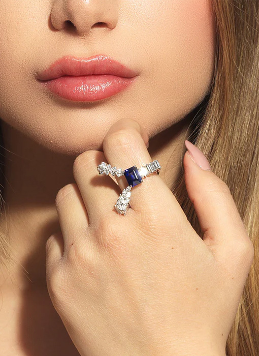 Round Diamond: 0.42 ct Marquise Diamond: 0.70 ct Baguette Diamond: 0.54 ct Ruby: 2.28 ct
