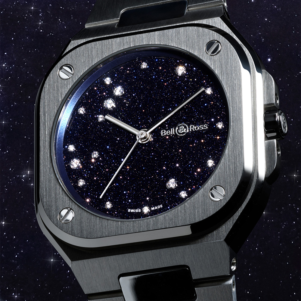 BELL & ROSS BR-05 BLUE DIAMOND EAGLE 36MM Contemporary and refined, the smallest BR-05 becomes precious with the BR-05 Blue Diamond Eagle 36MM,asserting a femininity that is both strong in character, symbolic, and dreamlike. Playing with contrasts, the latest addition to the BR-05 collection combines the geometric rigor of a square case with the delicacy of a round, jewellery-inspired dial recreating the Eagle constellation. Set against an aventurine sk y, seven diamonds reproduce the exact position of each of the stars that trace the majestic silhouett |