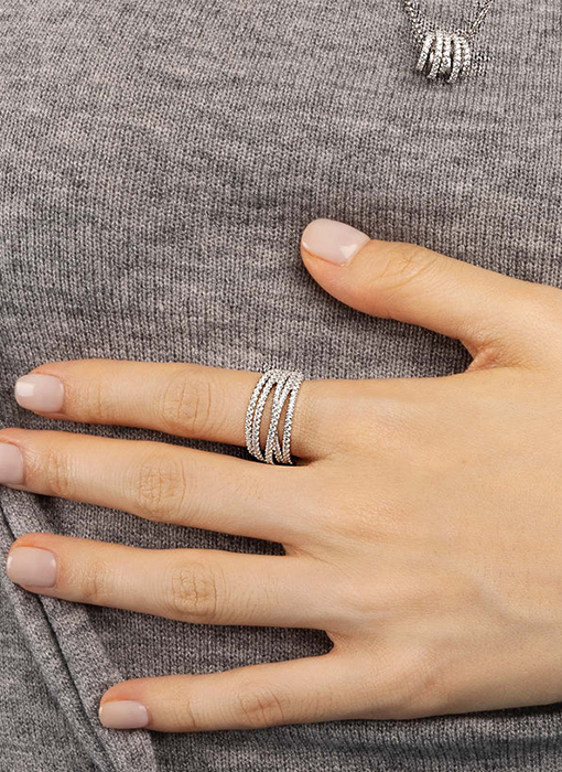 Elegant and timeless, this multi-hoop ring will be the perfect addition to your collection. Embellished with white stones, it will brighten up your daily look.