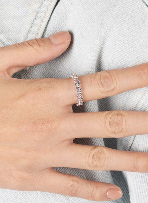 Capturing the organic flow of raindrops, this ring features round-shaped stones artfully arranged. It showcases pastel rose tones, evoking the vibrant spring.