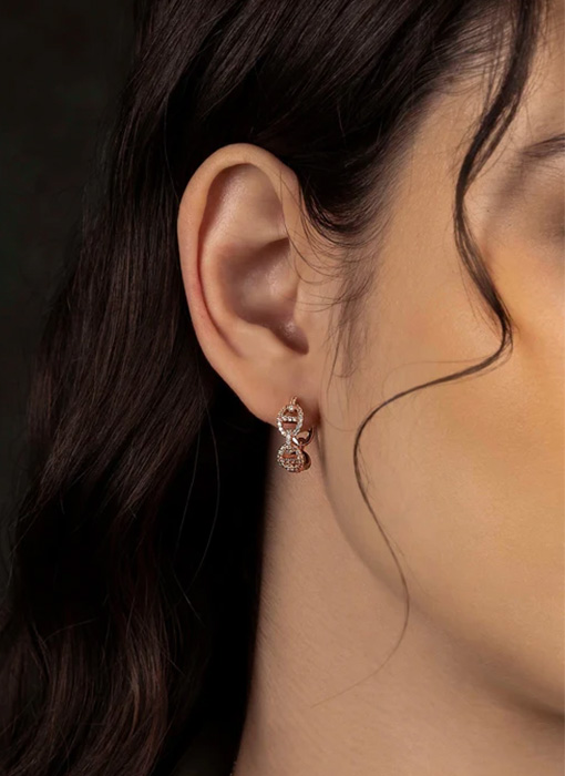 These earrings are made with APM Rose Alloy and 18k gold plated. They are microset with white cubic zirconia.