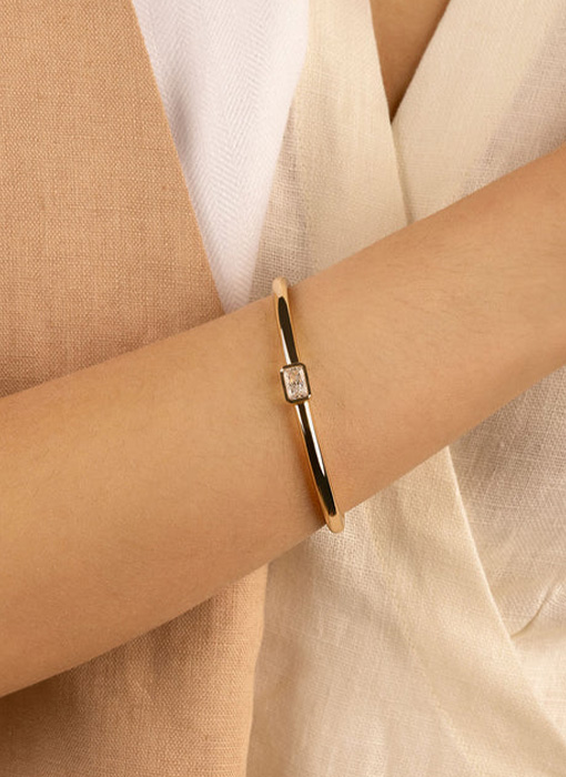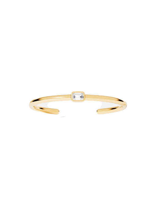 This cuff embodies the golden hues of this collection with pavé detail. A timeless design that is easy to wear and mix and match for any occasion. The stone setting allows light to shine through, creating a radiant effect.