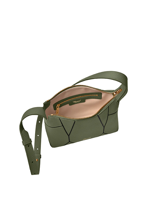 Discover effortless elegance with our Diamond Crossbody Bag for women. Crafted from exquisitely khaki grained calfskin, its sleek silhouette is perfectly complemented by antique gold-toned hardware with a zip closure for security.