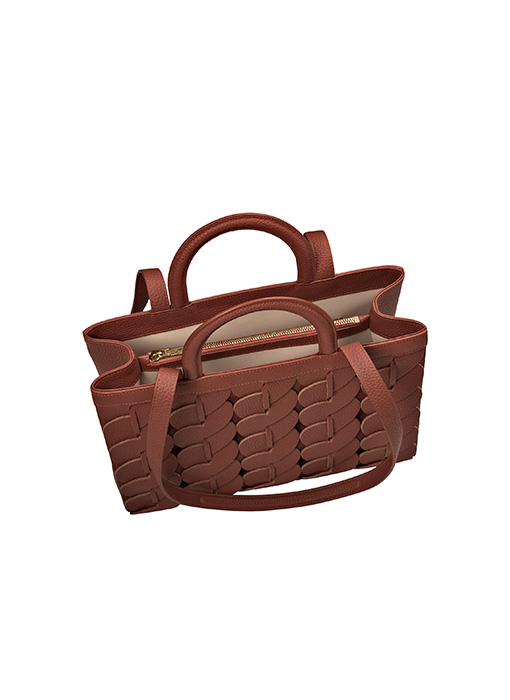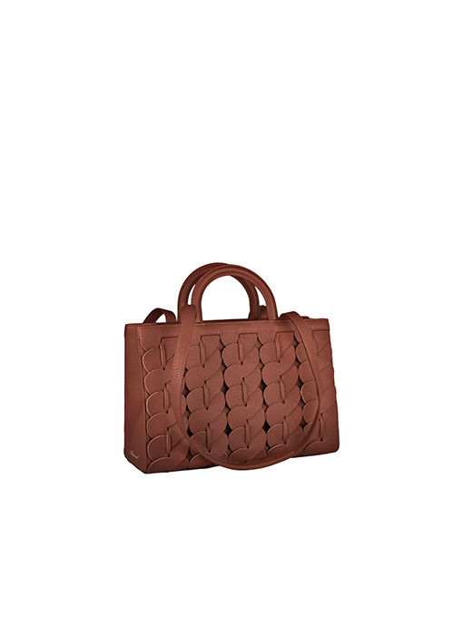 With its distinctive leather interlacing heart design beautifully echoing Chopard’s Happy Hearts jewelry collections, the Happy Hearts Small Tote in cognac grained calfskin is your versatile companion for effortless style.