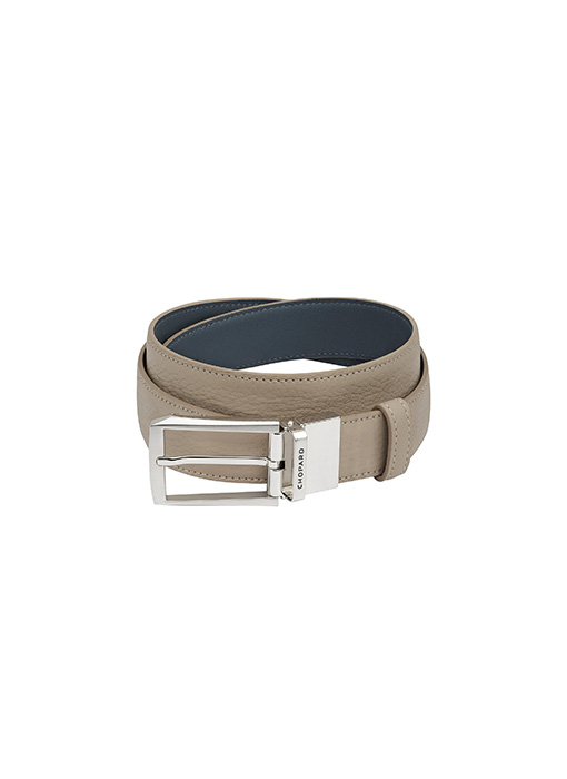 One luxury belt, two unique styles. This leather men's belt is reversible, allowing you to wear it with a range of different outfits. One side is crafted from beautiful beige grained leather, while the other is in contrasting blue calfskin.