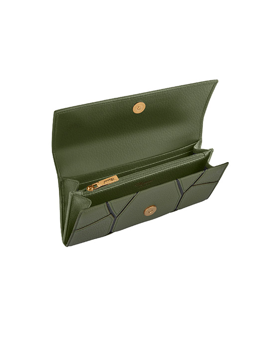 12 card slots, 2 compartments for banknotes and 1 zipped compartment for coins