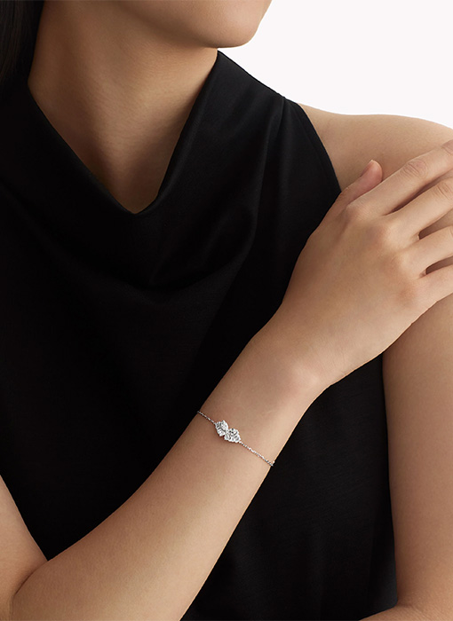 exquisite bracelet, from which an elegant silhouette, replicating a butterfly’s wings radiates outwards.