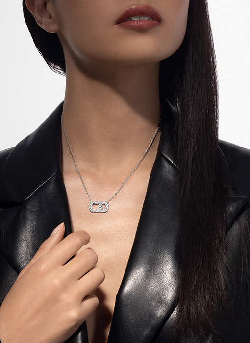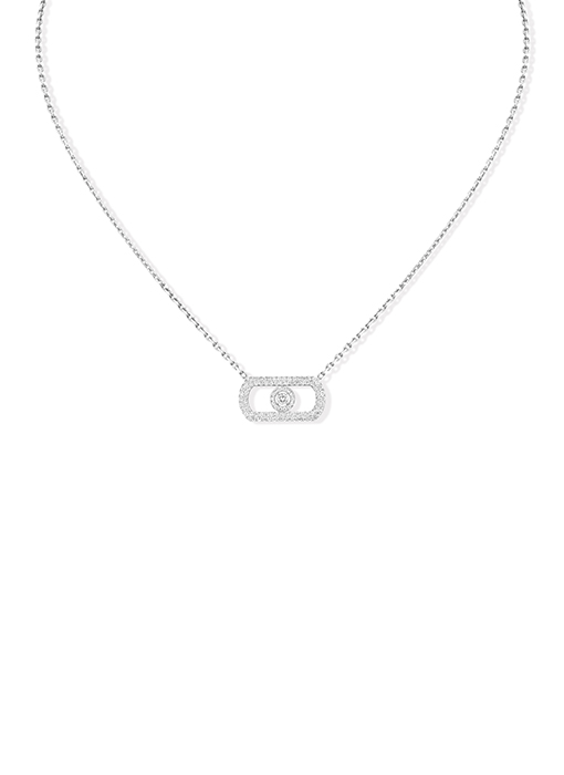 If you're looking for the ultimate status pendant necklace, look no further! The So Move diamond necklace in white gold is the Messika creation for you! The Maison's iconic motif is reinvented in an even bolder, more assertive version.