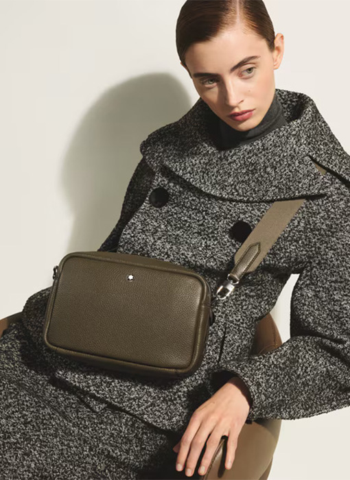 Crafted from soft khaki grain calfskin leather, this small cross-body bag features a rectangular silhouette enhanced by Meisterstück leather details, including a bold nib-shaped zip pull and refined saddle stitching that echoes the trace of a pen.