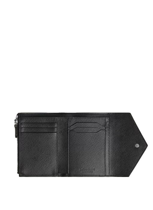 Crafted from embossed Sartorial leather in a refined two-tone combination of classy blue and black, this tri-fold wallet is both stylish and practical. Designed to fit comfortably in your pocket, the clasp opens to reveal a zipped